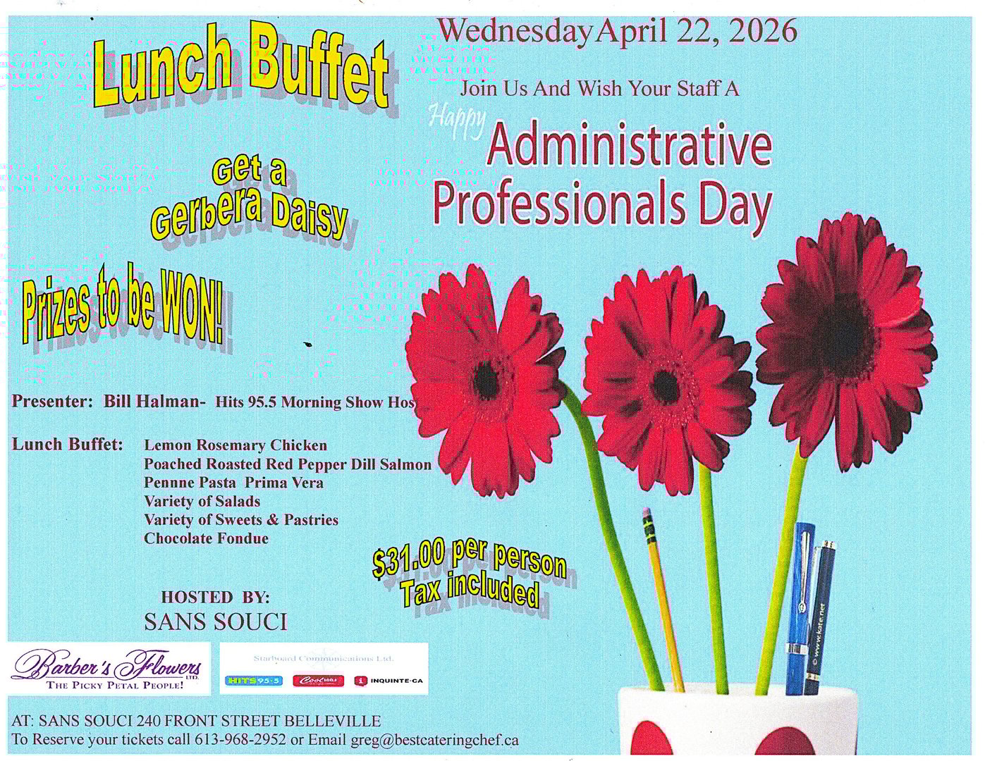 $31.00(all included) Lunch Buffet, Free Flower and Prizes for Admin Staff