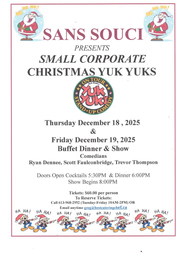Small Corporate Christmas Yuk Yuk Shows December 18 & 19- $60.00pp